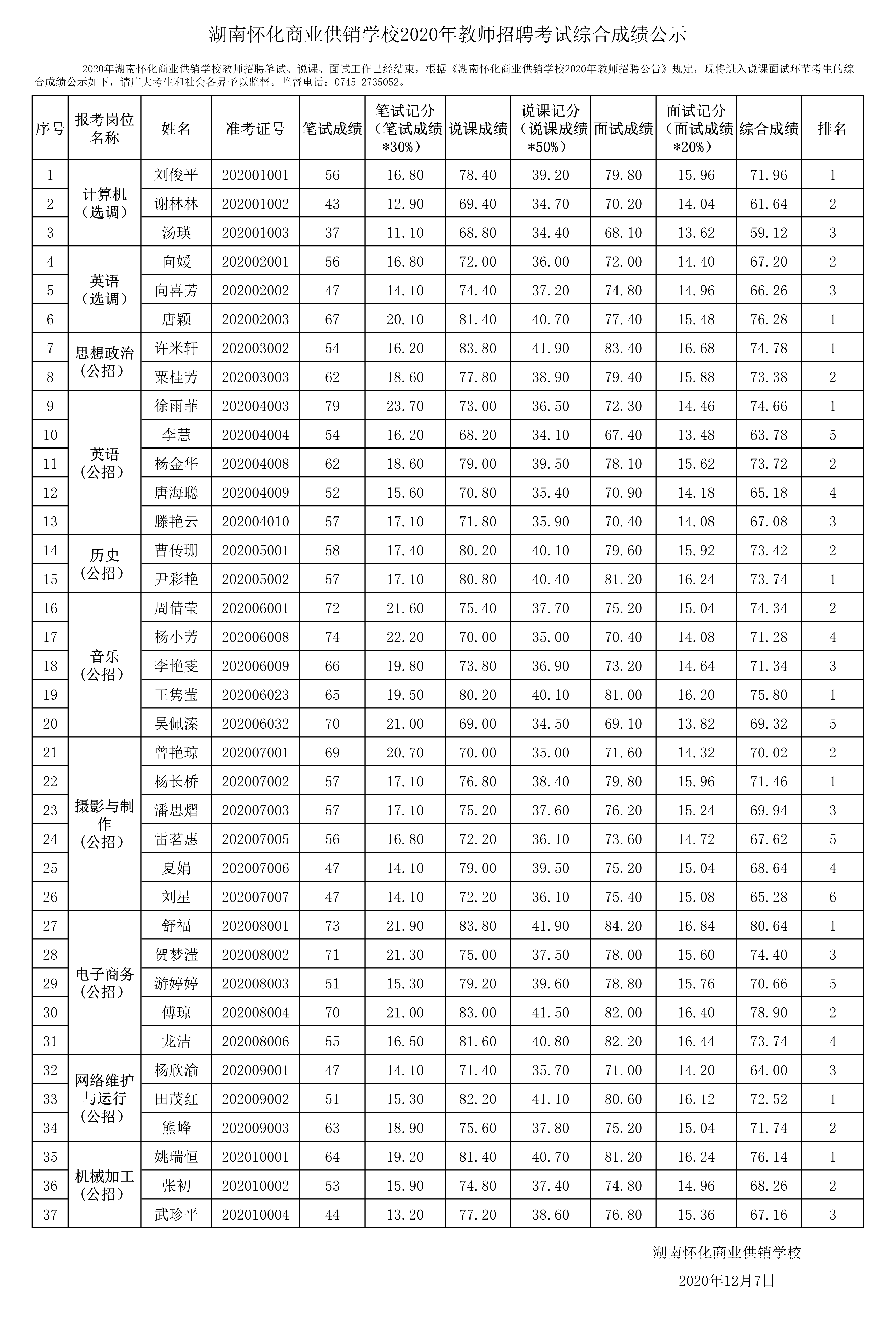 下一篇:湖南懷化商業(yè)供銷學(xué)校2020年教師招聘考試筆試成績公示